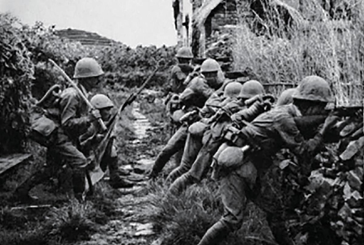 1938年10月2日,富水河岸。侵華日軍藤岡部隊(duì)的機(jī)槍手正在向中國(guó)守軍掃射。
