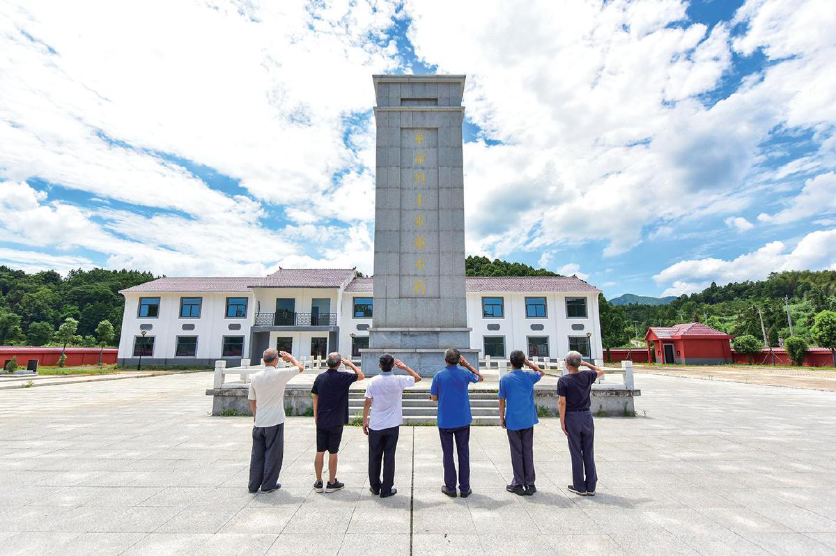 六位老兵向木港鎮(zhèn)烈士陵園革命烈士紀(jì)念碑敬禮
