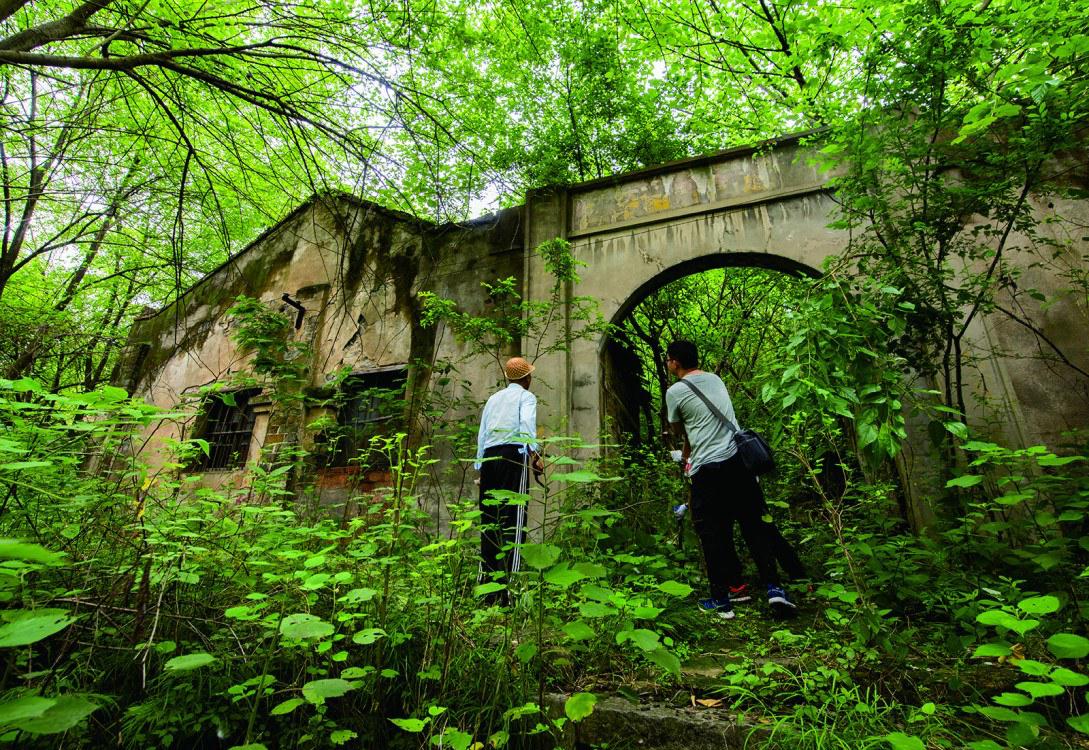 在熊忠武的帶領(lǐng)下,記者來到黃荊山腳下,沿著云霧洞旁蜿蜒的公路向上攀登,只見三個(gè)幽深的山洞掩映在一片雜草叢中。漆黑的山洞中有一塊厚實(shí)的大石塊,熊忠武說:“這就是高空索道的轉(zhuǎn)揚(yáng)機(jī)底座?!?/p>