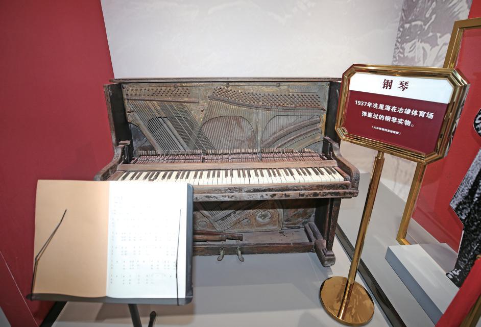 “這就是冼星海當(dāng)年在冶雄體育場(chǎng)指揮抗日救亡歌詠時(shí)使用過的鋼琴,是從德國(guó)漢堡進(jìn)口的?!敝x萍說。當(dāng)工作人員輕輕掀開發(fā)黃的琴譜,《救國(guó)軍歌》的旋律隨即在展館內(nèi)回蕩。那激昂的音符仿佛穿越時(shí)空,將人帶回那個(gè)烽火連天又熱血沸騰的年代。