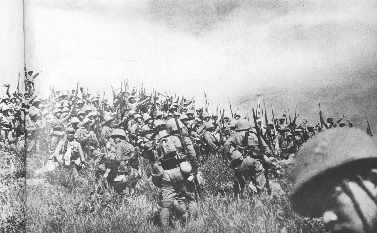 半壁山失守。日軍記者鏡頭下的日本侵略者,在我國土上歡呼,我國國民在血與火中哭泣。
